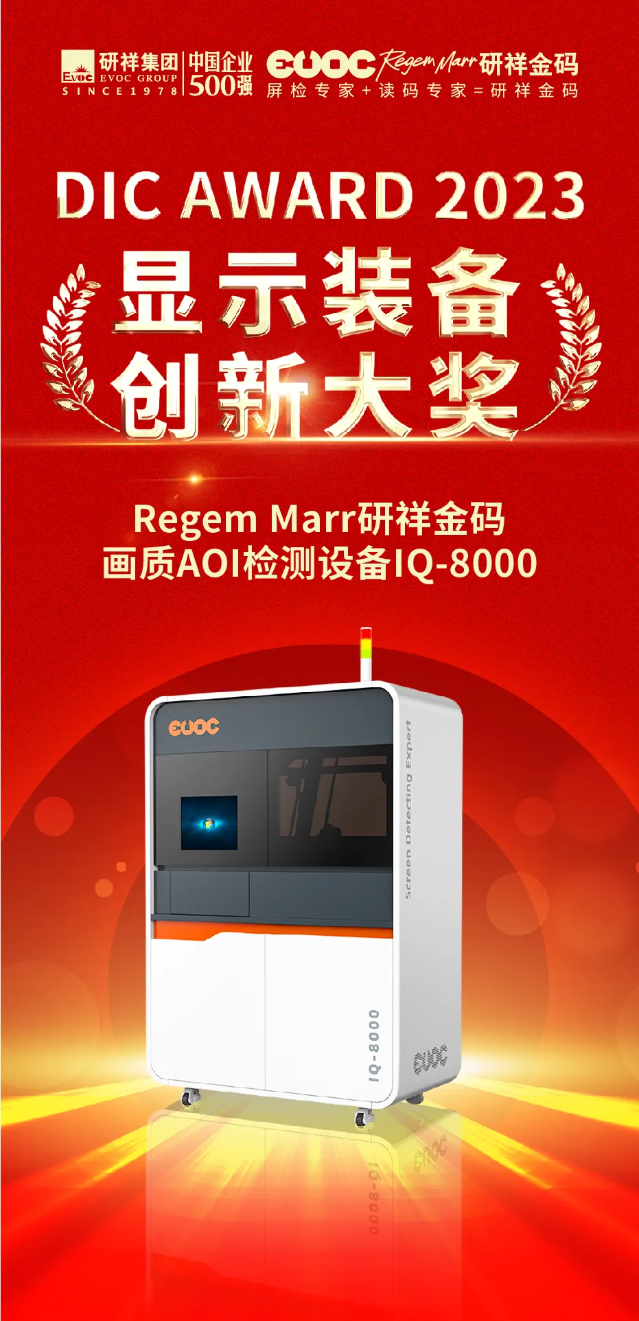 近日,DIC AWARD 2023国际显示技术创新大奖获奖名单公布,中欧zoty画质AOI检测设备IQ-8000凭借前沿AI技术、卓越的产品性能,荣获“显示设备创新大奖”!