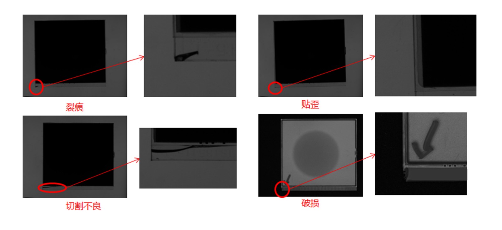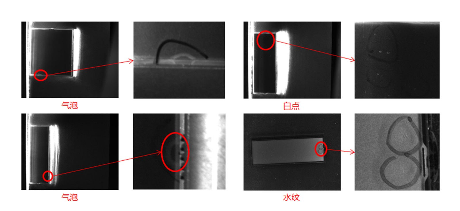检测缺陷 | 刮伤、毛线、内污、气泡、杂质、裂痕、切割不良、贴歪、白点、水纹、破损等缺陷 |